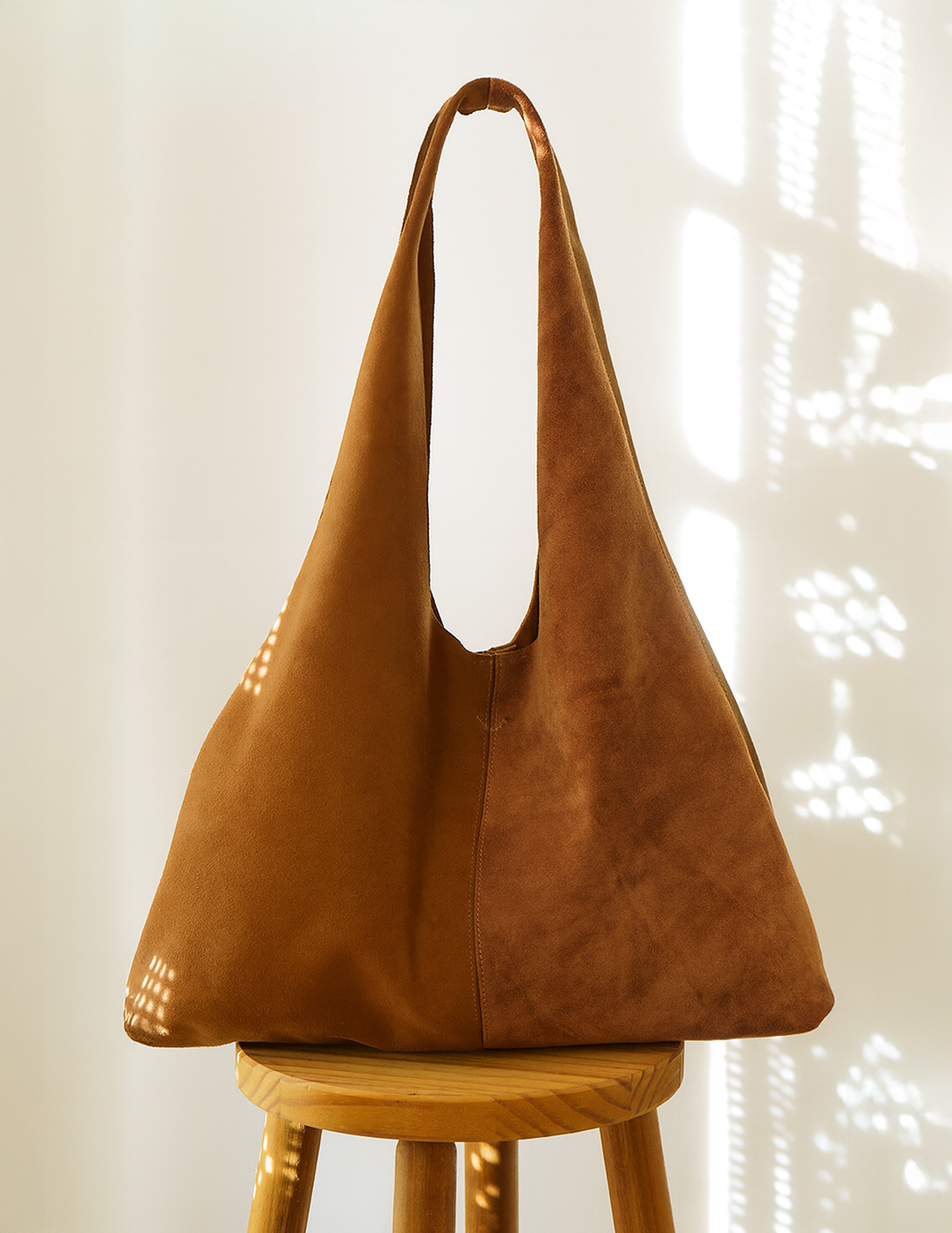 Produzida artesanalmente no ateliê a.v.h, esta bolsa em camurça natural sem forro é feita à mão, preservando a textura suave e a essência pura do material.